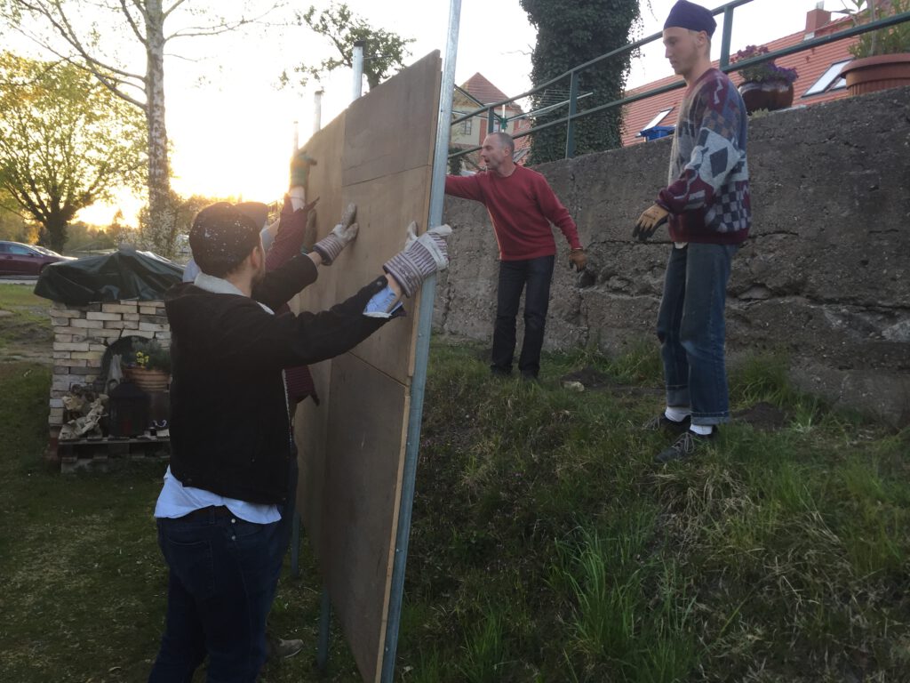 Wir performen den Raum, der eine bestimmte Herkunft hat. Der Raum, der einst für Propagandastrategien im dritten Reich genutzt worden ist können wir nun nutzen, um ein Spiel mit Theaterlatten zu machen. Andere nutzen ihn zum Skaten und wieder andere nutzen ihn als Drehort für Training -Tutorials. Es gibt viele Wege. Doch wir werden nicht zulassen, diesen Ort als Verherrlichung von Fremdenfeindlichkeit offen zu lassen.
