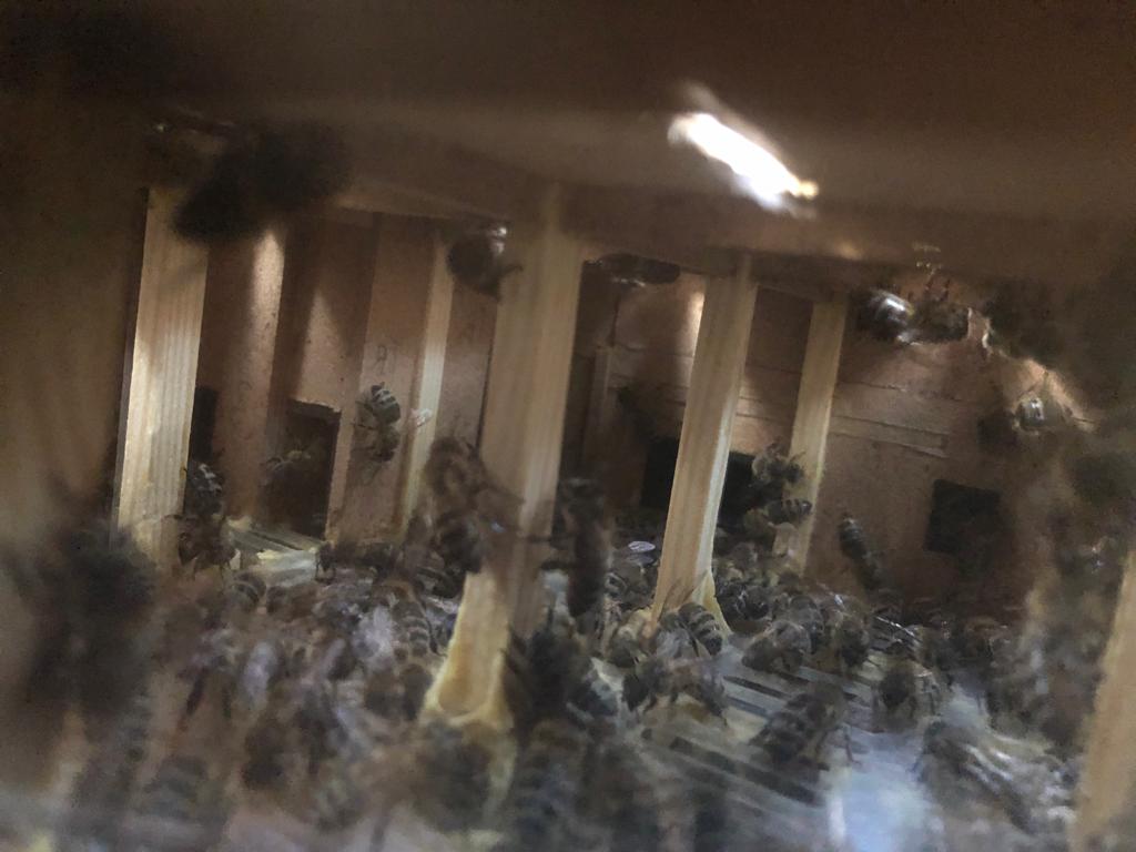 In einer etwas größeren Gruppe, die Woche für Woche eng beisammen lebt, den Alltag zu gestalten, ist keine leichte Sache. Alle haben ihre Bedürfnisse, eigenen Rhythmen, und Lebensinhalte, die sie gerade durchlaufen. Ich bin in den Letzten Wochen immer mehr auf die Bienen als ausgezeichnete Künstlerinnen des Zusammenlebens in einer enorm großen Gruppe begegnet. Sie sind so stark aufeinander abgestimmt, dass das Bienenvolk schon als ein Individuum angesehen werden kann und die einzelne Biene dabei sowas wie eine Zelle ist. Sie vollziehen verschiedene Tänze, um sich gegenseitig über Futterquellen, auch genannt Trachten, oder über ein geeigneten Ort für einen neuen Bienenstock auszutauschen. Auch der Duft spielt bei ihnen eine wichtige Rolle. zum Beispiel können sie einen Befall des Volkes von einem Paralysevirus mildern, indem sie auch so etwas wie social distancing in ihrem Bienenstock betreiben. Die infizierten Bienen können durch den Geruch identifiziert werden und körperlicher Kontakt wird mit ihnen gemieden.