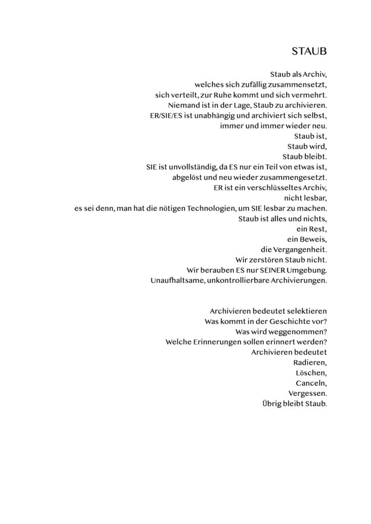 Archive in Zeiten der Digitalisierung? Wie wird archiviert? Was wird archiviert? Wer archiviert? Was wird nicht archiviert? Benötigt Kunst Archivierung? Wie kann Kunst archiviert werden? Wer hat Zugriff zum Archiv? Wollen wir archivieren?