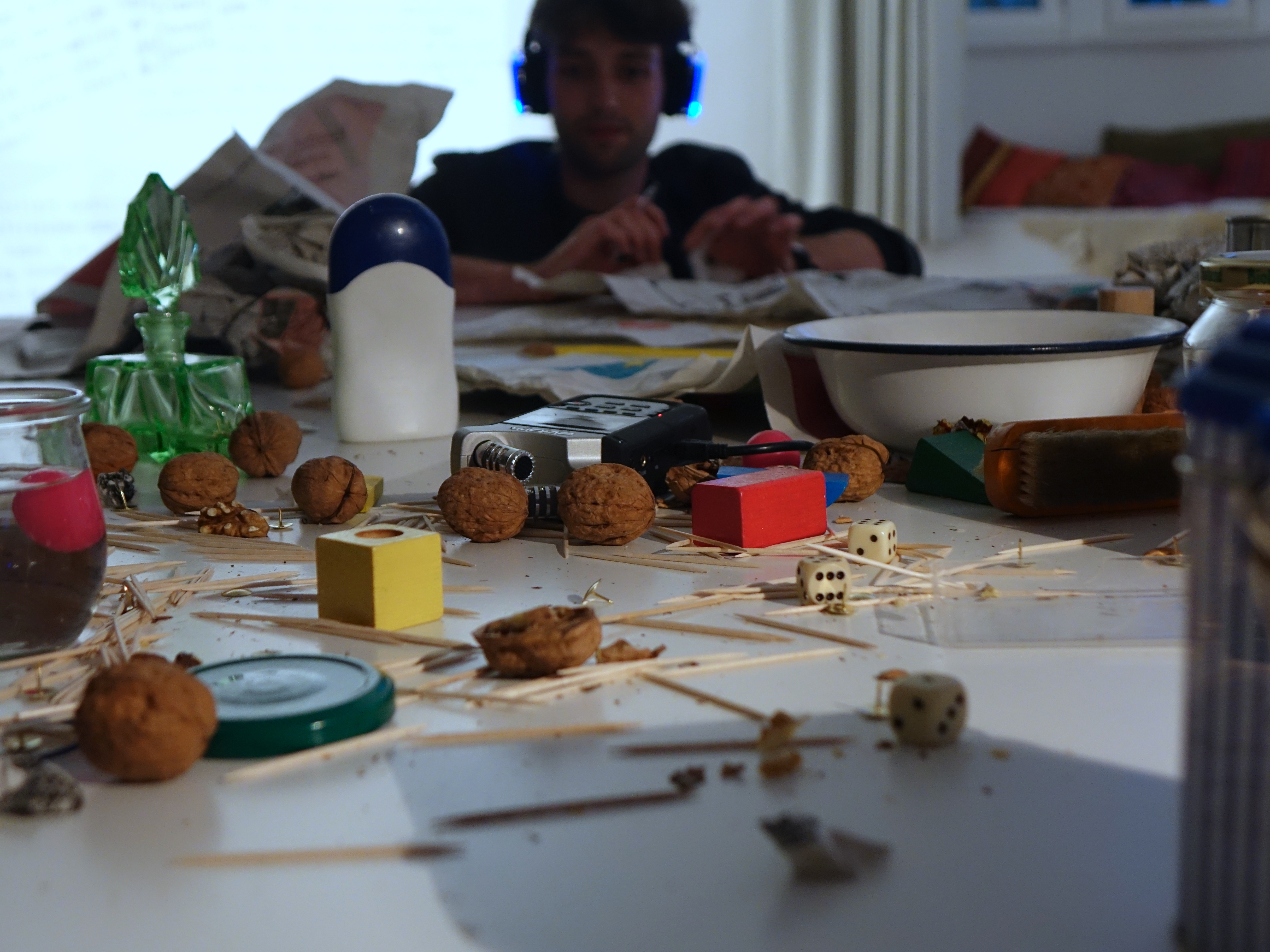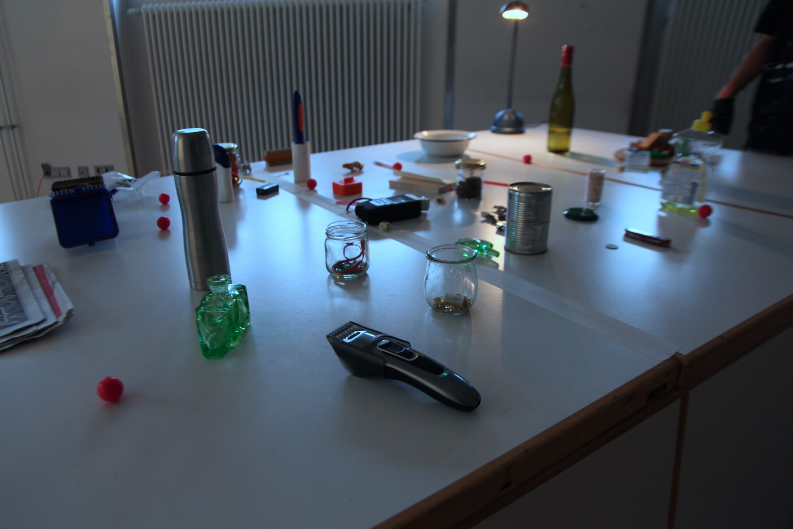 Im Experiment der freien Gestaltung, sind Besucher*innen eingeladen Geräusche mithilfe von Alltagsgegenständen zu erzeugen. Ihr Klang ist jedoch anders und unterscheidet sich von dem Vertrauten. Es ensteht ein Moment des Neu-Entdeckens.