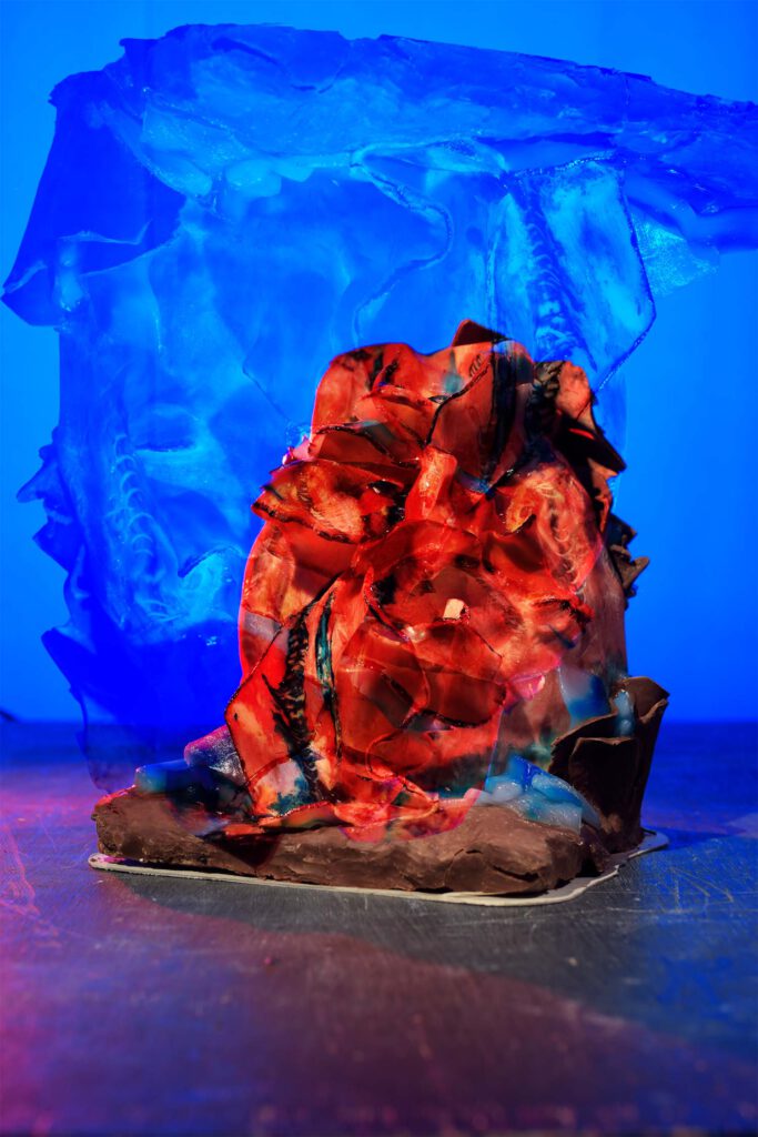 Formstudien zu Resonanzräumen. Arbeisstand „Mambrane“ eine Kooperation von Samuel Johnstone, HfM Dresden und Swantje Silber, HfBK Dresden. zu „not to be shifted“, Ausstellung am 24./25.07.2021, Festspielhaus Hellerau.